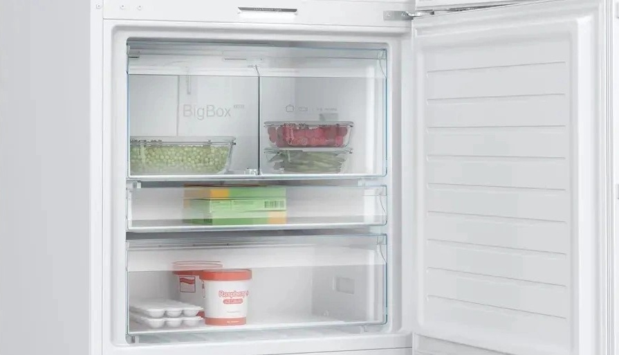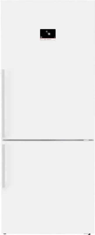 Bosch KGP76AWC0N — полноразмерный двухкамерный холодильник с морозильной камерой снизу. Модель в белом корпусе рассчитана на отдельную установку и сочетает вместительность (526 л), инверторный компрессор и систему No Frost в обеих камерах. Подходит для большой семьи.