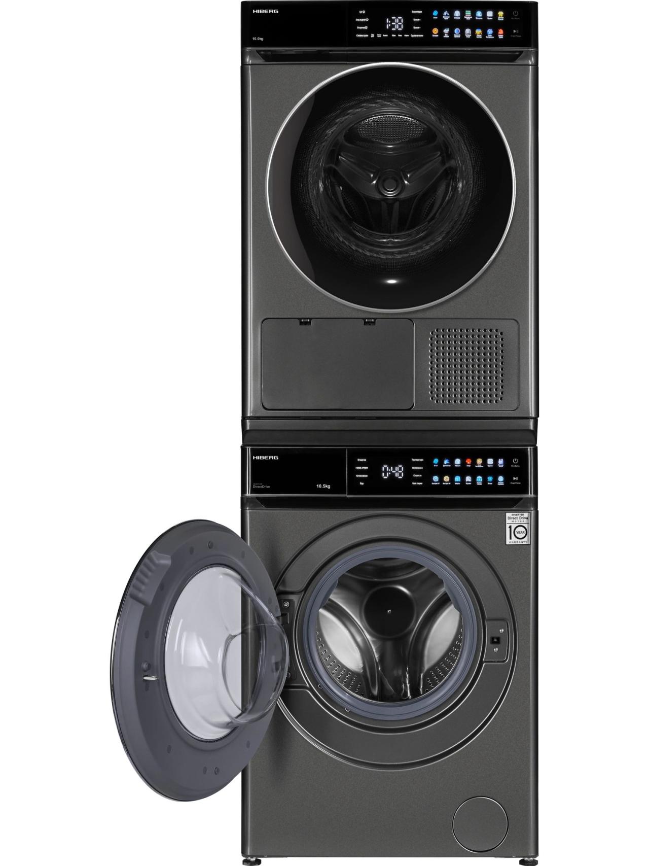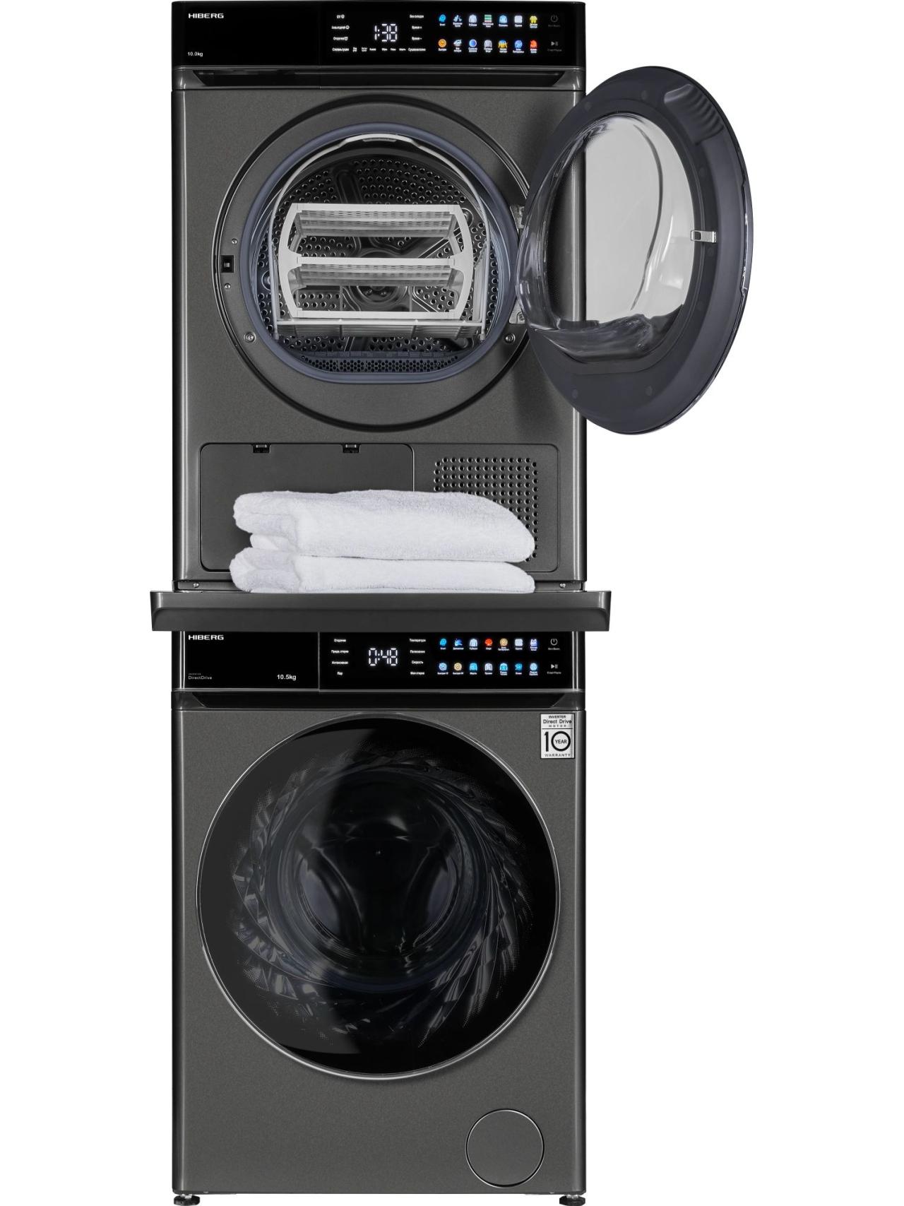 Комбинация HIBERG сушильная машина HDQ11 10 Sd + стиральная машина i-DDQ11 1014 Sd + соединительный элемент RU