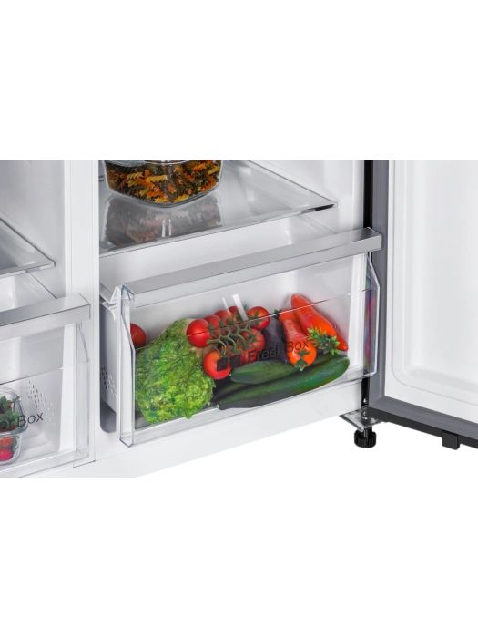 Отдельностоящий инверторный холодильник NORDFROST RFS 525DX NFXd типа Side-by-Side с общим объемом 525 литров - прекрасное решение для большой семьи и крупногабаритной кухни.