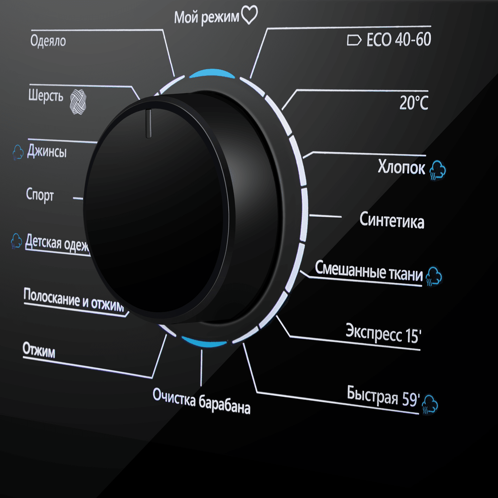 • Температура: Холодная / 20°C / 40°C / 60°C / 90°C