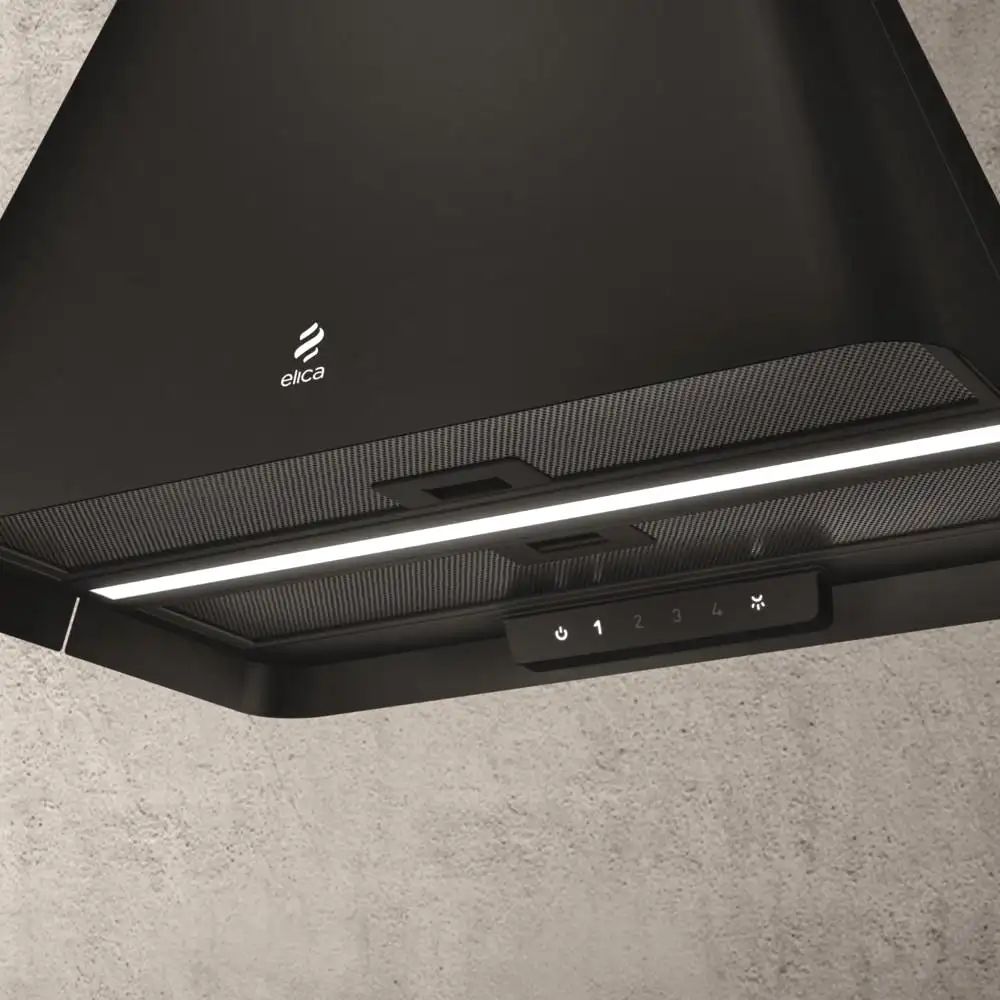 Вытяжка Elica IKONA BL MAT/A/60 — стильное решение в черном цвете для современных кухонь. Формат установки поддерживает потолочный монтаж, что позволяет разместить прибор как над классической варочной панелью, так и над кухонным островом. Модель может работать как с отводом в вентиляцию, так и в режиме рециркуляции (с угольным фильтром).